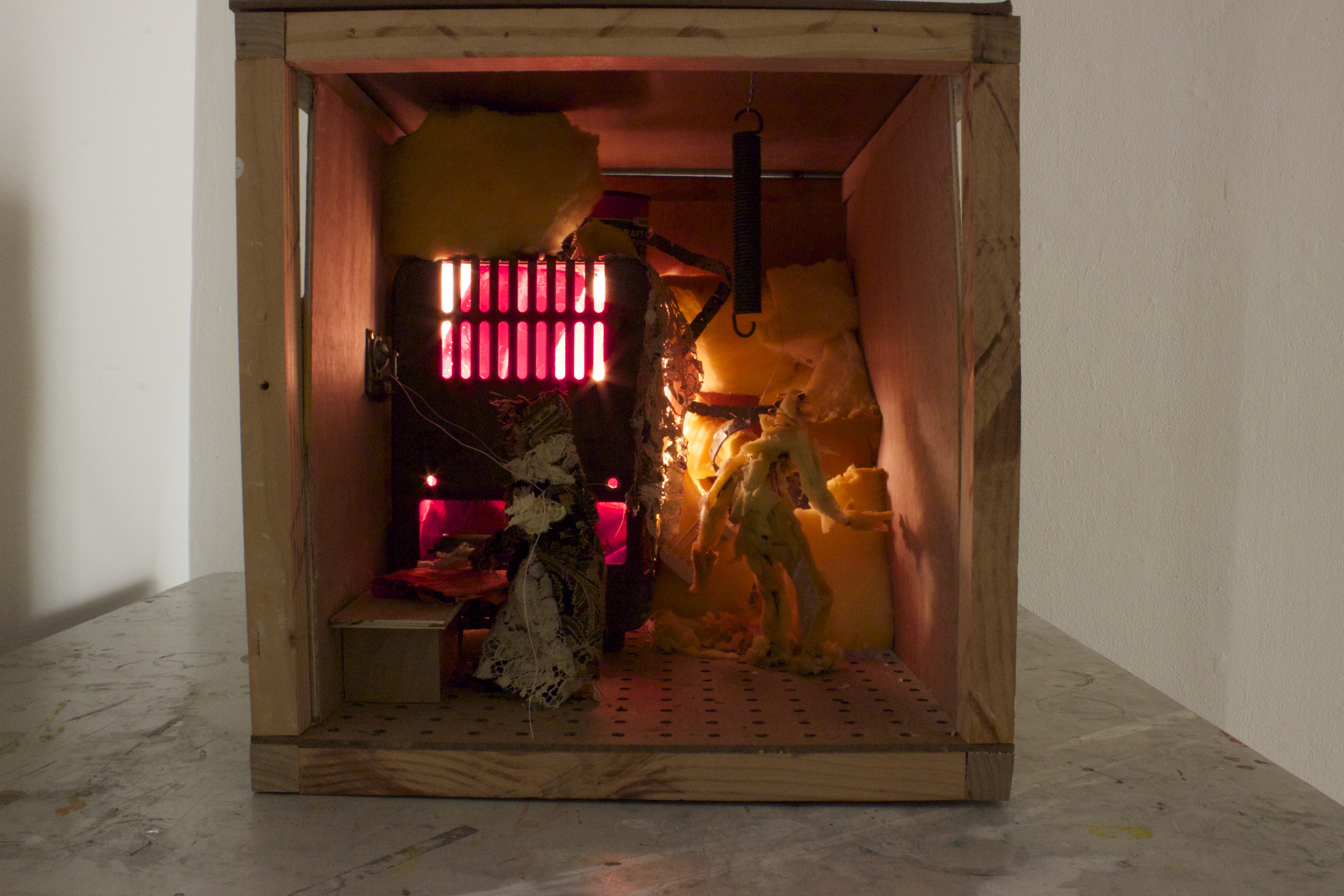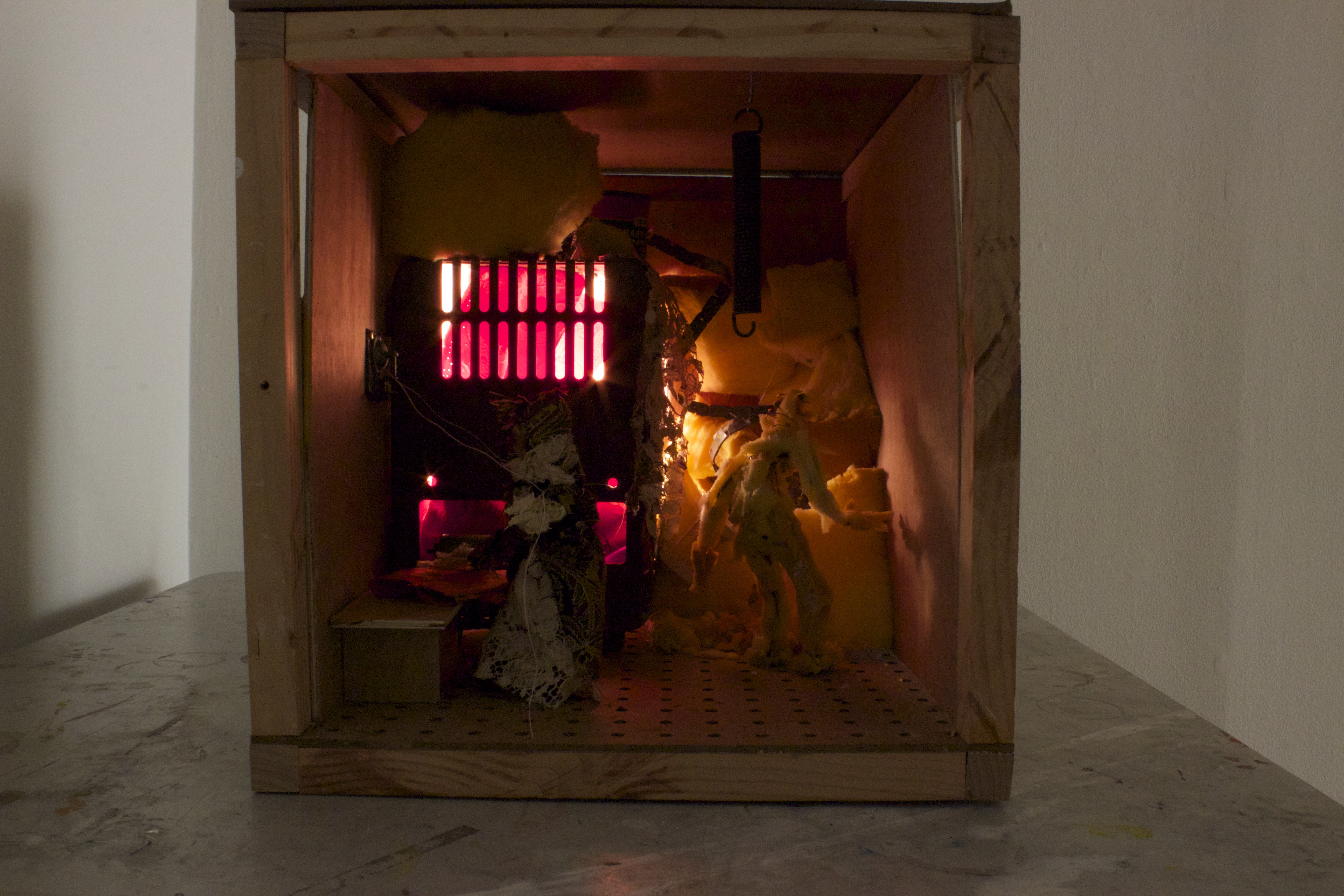 Tom Thayer’s 2012 Whitney Biennial installation for ideas about how one might combine sculpture and video