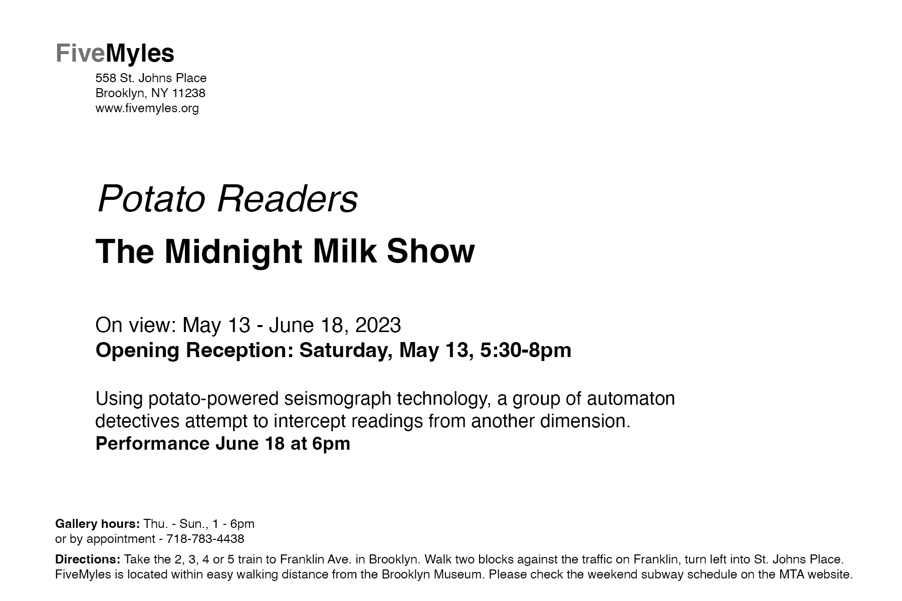 Posted in Exhibition, Midnight Milk Show, News, Potato Readers